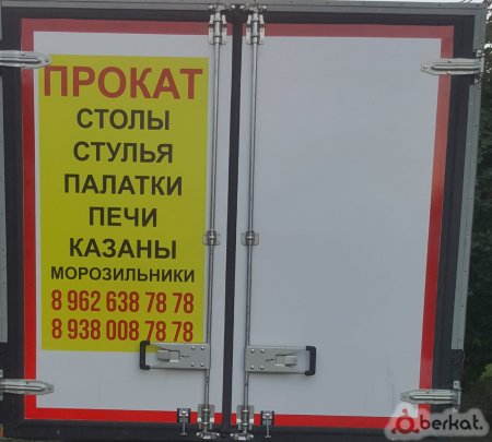 Столы, стулья, палатки, морозильники, печи, казань, бойлер для кипятка.