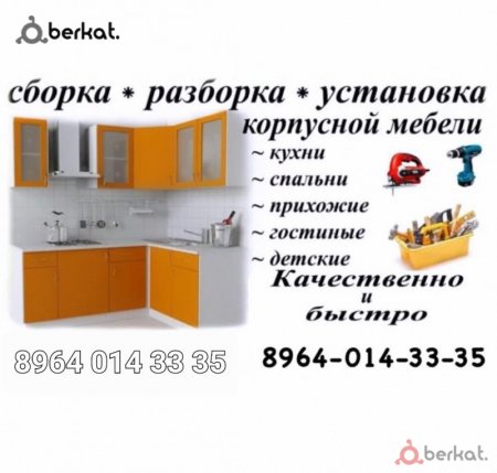 Сборка и разборка любой мебели. Соберём; Шкафы-купе. Кухонные гарнитуры. Горки. Прихожие. Спальни. Кровати. Диваны. Детская мебель. Врезка майки и Варочной панели.