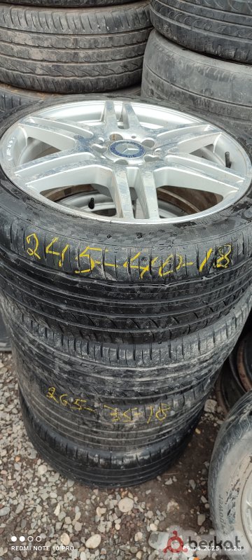 Колеса в отличном состоянии! Не гнутые не бьют! На заднем одном диски одна точка варки и все! Резина почти новая и дорогая! Перед 245/45R18! Зад 275/40/R18!Цена 85 тысяч торг минимальный!