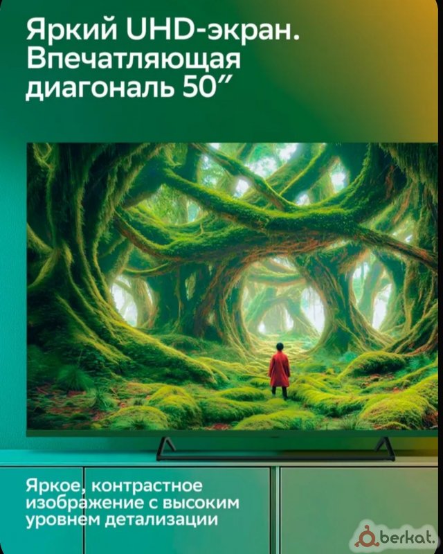 Отличное качество по доступной цене⚡ 2 оперативка 32 память⚡ Большой безрамочный экран 50"дюймов 127 сантиметров по диагонали⚡️ 4K Ultra HD экран очень красивая картинка ⚡ удобная в управлении операционная система⚡голосовой пульт⚡ Wi-Fi, VKвидео RUTUBE. ТВ каналы, бесплатно фильмы, сериалы, мультики⚡20 каналов через антенну(dvb-t2)⚡производство Белоруссия ⚡