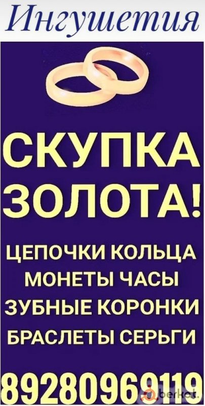 Скупка Золота, ювелирных изделий всех видов по Р.Ингушетии..89280969119