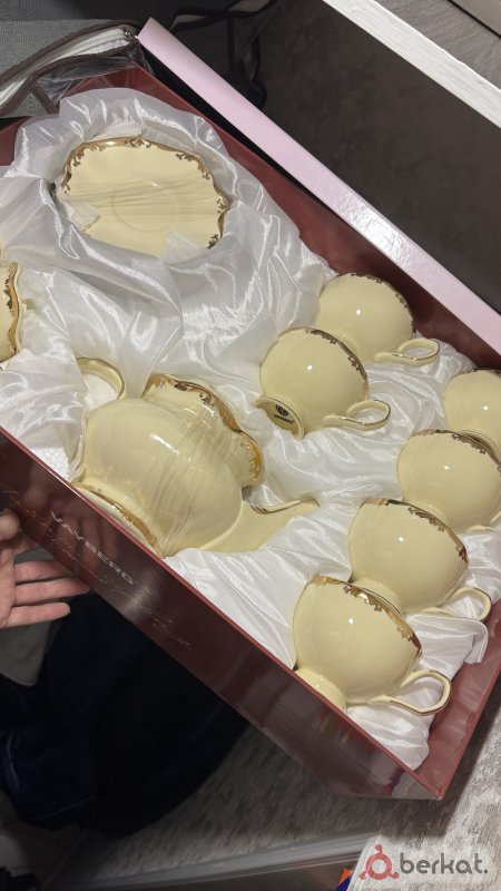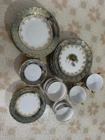 Стояла как для декора в стенке, очень красивый набор сервиза, набор не весь, 8 чашек,10 шт тарелок под чашки, 11 закусочных, 2 большие, 2 соусницы, 2 сахарницы, и 2 чайника один из чайников музыкальный с заводным механизмом, продаю потому что негде уже хранить