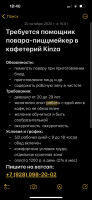 Требуется девушка работник - помощник повара / пиццмецкер в кафетерий в Назрани. Читайте текст вакансии на скрине. Пишите только на ватсап. Не звоните. Ждём адекватных в дружную команду)