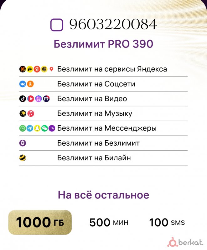 Полный безлимит, 1000мин , 1000смс, если хотите красивый конец номера, организуем , количество ограничено. Пишите на Ватсап для заказа