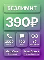безлимит+1000 мин 1000смс 390р в месяц