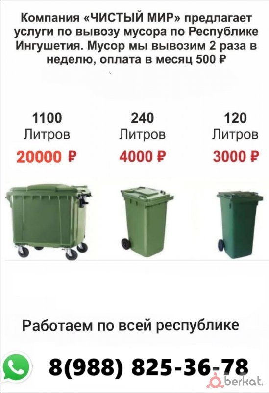 вывоз мусора по всей ингушетии 2 раза в неделю оплата в месяц 500 ₽ оставьте заявку по ссылке https://forms.gle/dnvzxvqdaeobpvpt8 или позвоните на номер/напишите на ватс апп
