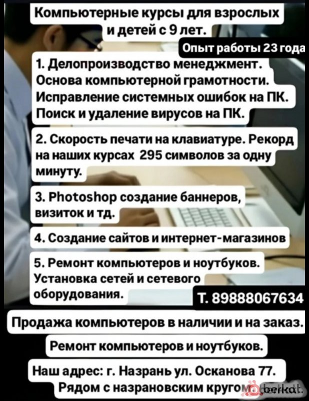 Компьютерные курсы. для взрослых и детей. Для мужчин и женщин раздельное обучение. 23 лет опыт работы! Информация на фото.